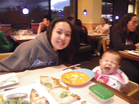 Sadly, my crappy camera takes blurry, yellow, photos indoors. But this is a picture of us pigging out at Kabuki. Caitlin enjoys showing us her "see-food". (see-food / sea food... get it?? heh heh).