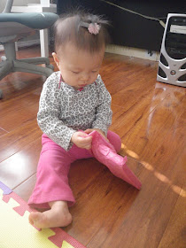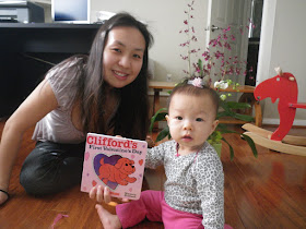 This was Caitlin's first Valentines Day, so of course, we included her in our festivities. We gave her the book "Clifford's First Valentines" as her gift and she got to eat chocolate for the first time (in the mini chocolate chip pancakes that I made).